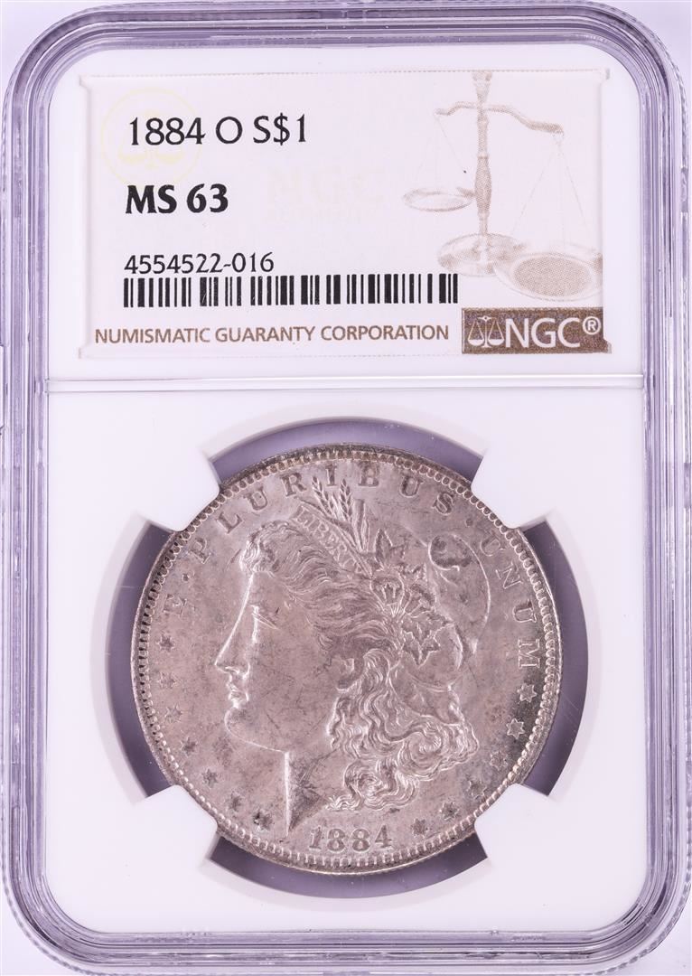 One 1884-O $1 Morgan Silver Dollar Coin NGC MS63. NGC Certified.