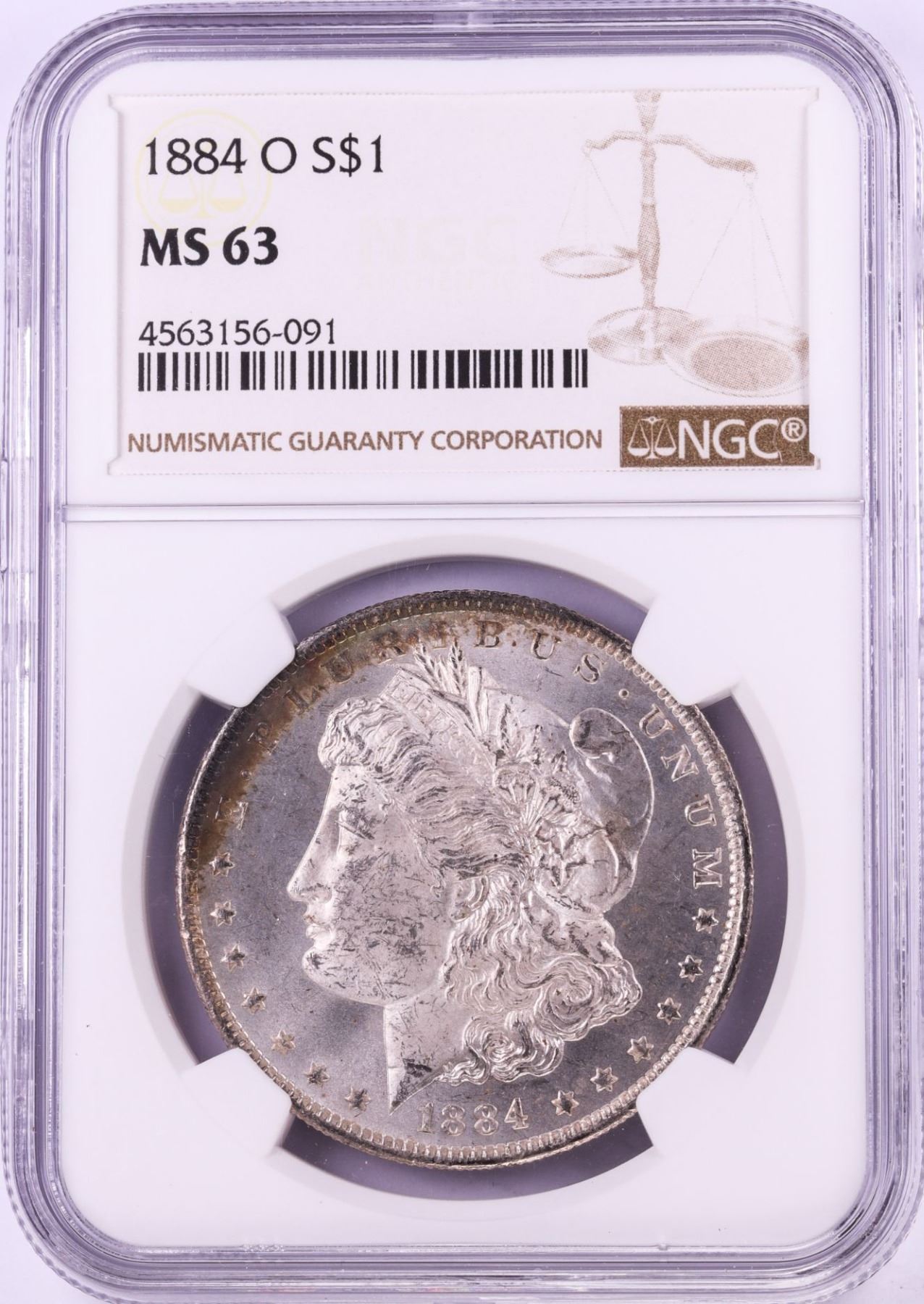 One 1884-O $1 Morgan Silver Dollar Coin NGC MS63.