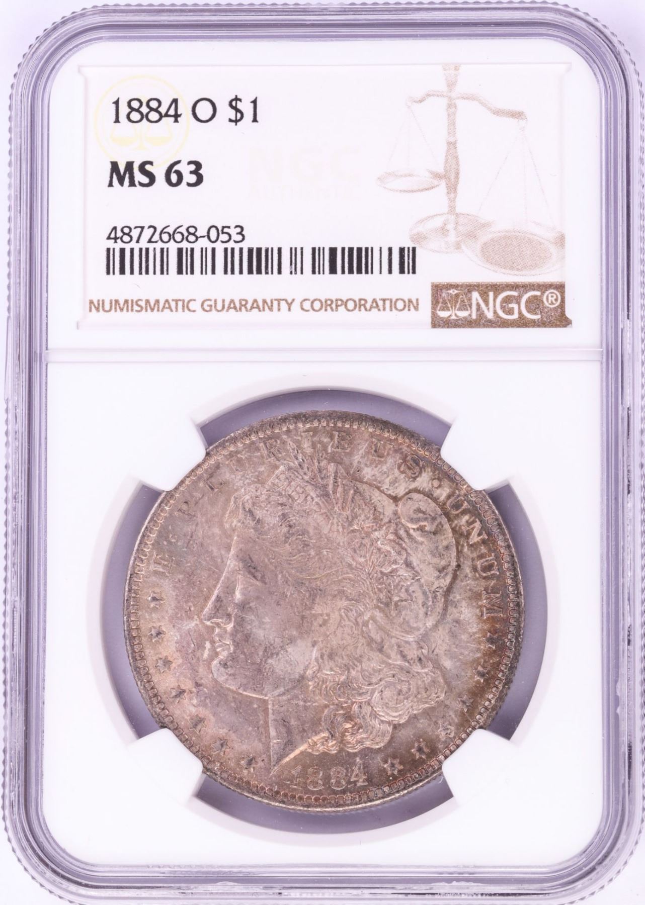 One 1884-O $1 Morgan Silver Dollar Coin NGC MS63.