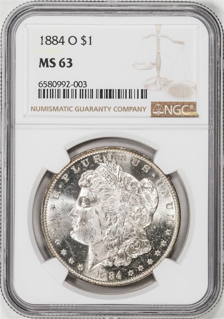 One 1884-O $1 Morgan Silver Dollar Coin NGC MS63. NGC Certified.