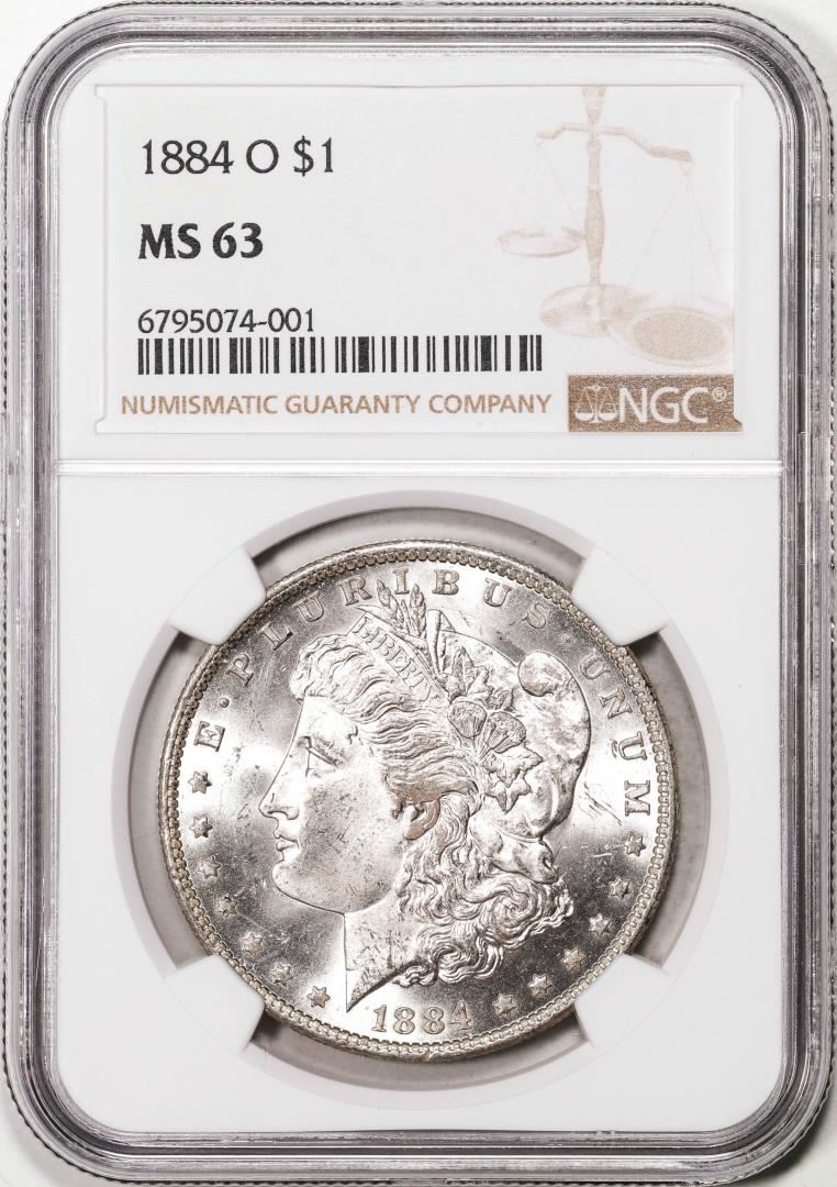 One 1884-O $1 Morgan Silver Dollar Coin NGC MS63. NGC Certified.
