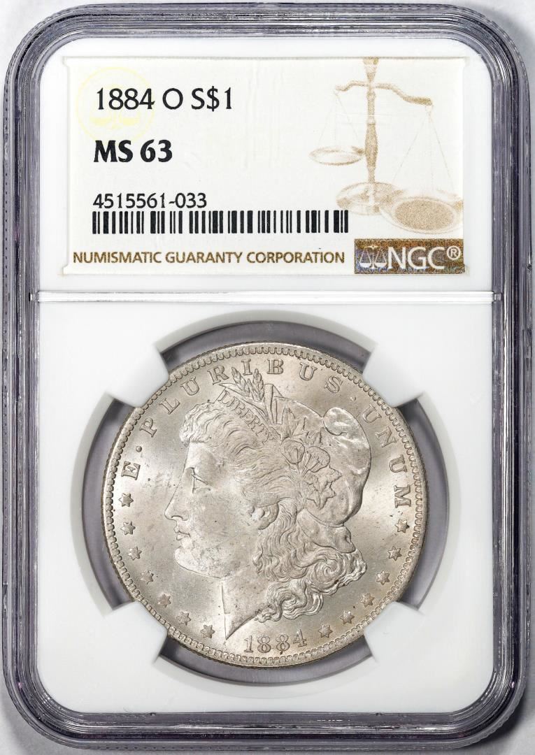 One 1884-O $1 Morgan Silver Dollar Coin NGC MS63.