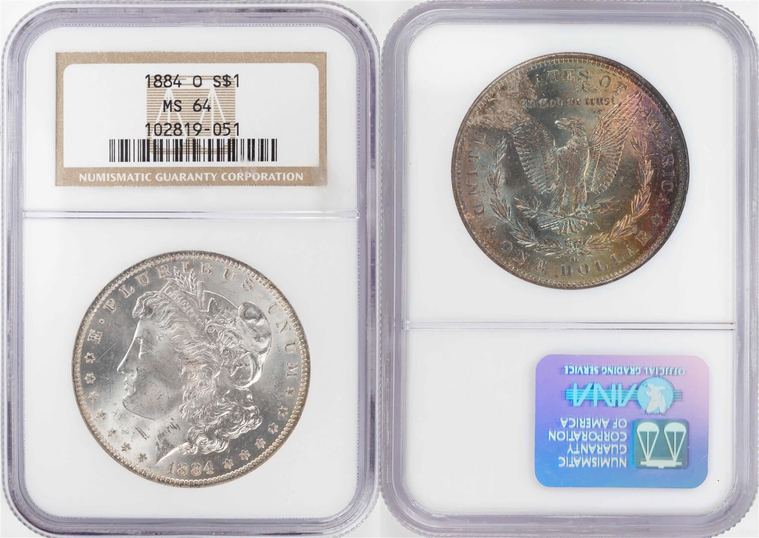 One 1884-O $1 Morgan Silver Dollar Coin NGC MS64 Amazing Toning. NGC Certified.