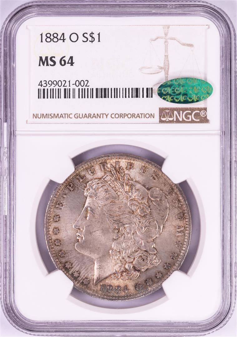 One 1884-O $1 Morgan Silver Dollar Coin NGC MS64 CAC Nice Toning. NGC Certified.