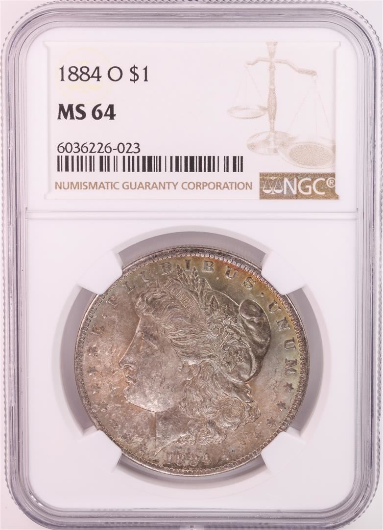 One 1884-O $1 Morgan Silver Dollar Coin NGC MS64 Great Toning. NGC Certified.
