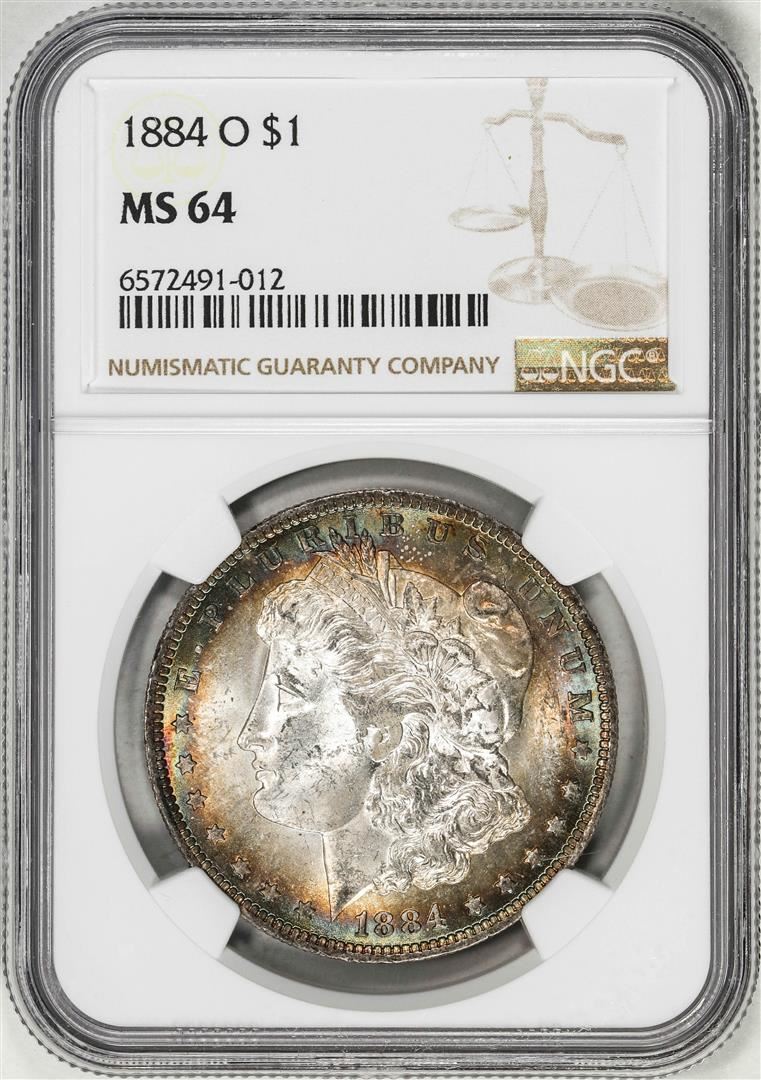 One 1884-O $1 Morgan Silver Dollar Coin NGC MS64 Nice Toning. NGC Certified.