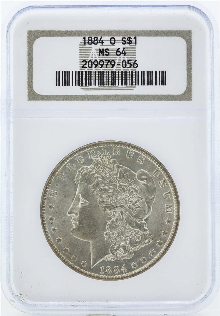One 1884-O $1 Morgan Silver Dollar Coin NGC MS64. NGC Certified.