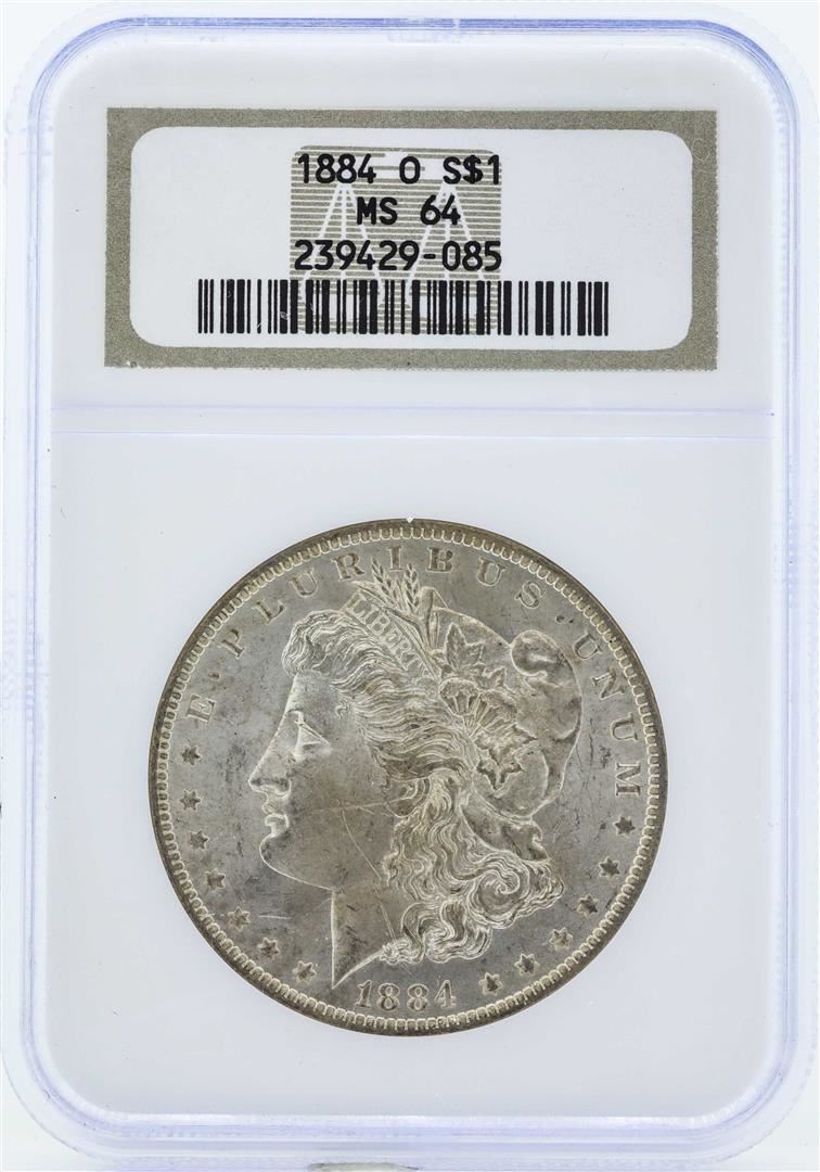 One 1884-O $1 Morgan Silver Dollar Coin NGC MS64. NGC Certified.