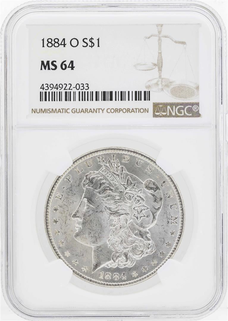 One 1884-O $1 Morgan Silver Dollar Coin NGC MS64. NGC Certified.