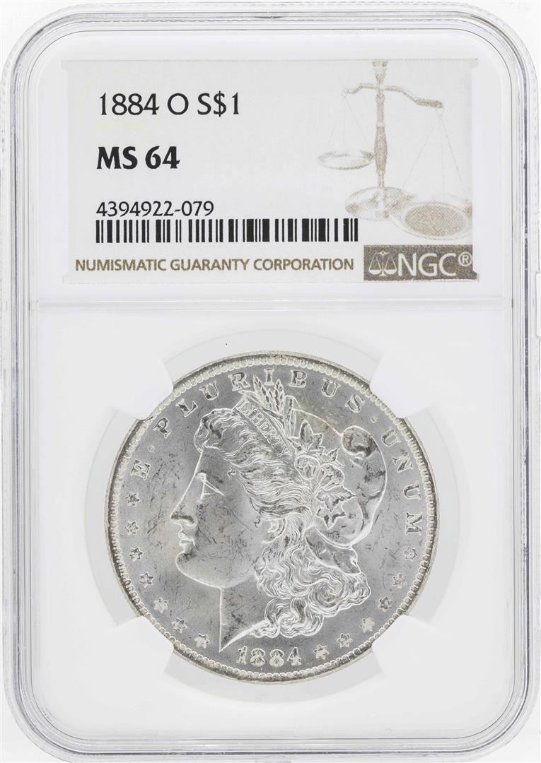 One 1884-O $1 Morgan Silver Dollar Coin NGC MS64. NGC Certified.