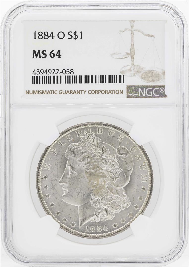 One 1884-O $1 Morgan Silver Dollar Coin NGC MS64. NGC Certified.