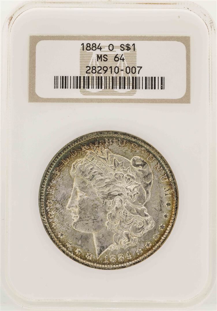 One 1884-O $1 Morgan Silver Dollar Coin NGC MS64. NGC Certified.