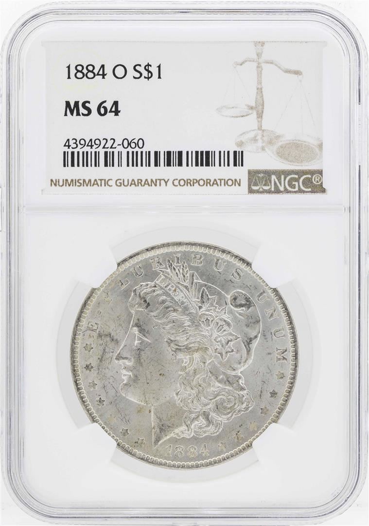 One 1884-O $1 Morgan Silver Dollar Coin NGC MS64. NGC Certified.