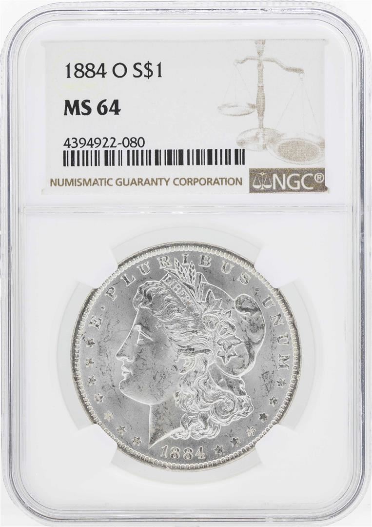 One 1884-O $1 Morgan Silver Dollar Coin NGC MS64. NGC Certified.
