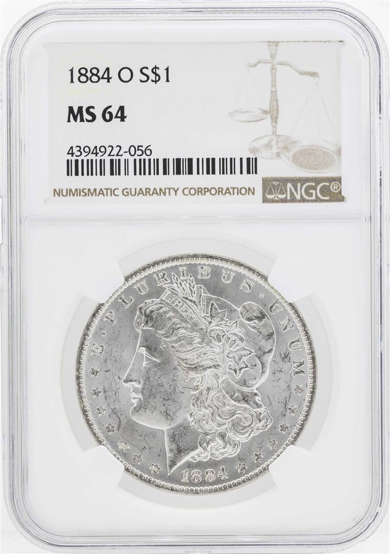 One 1884-O $1 Morgan Silver Dollar Coin NGC MS64. NGC Certified.