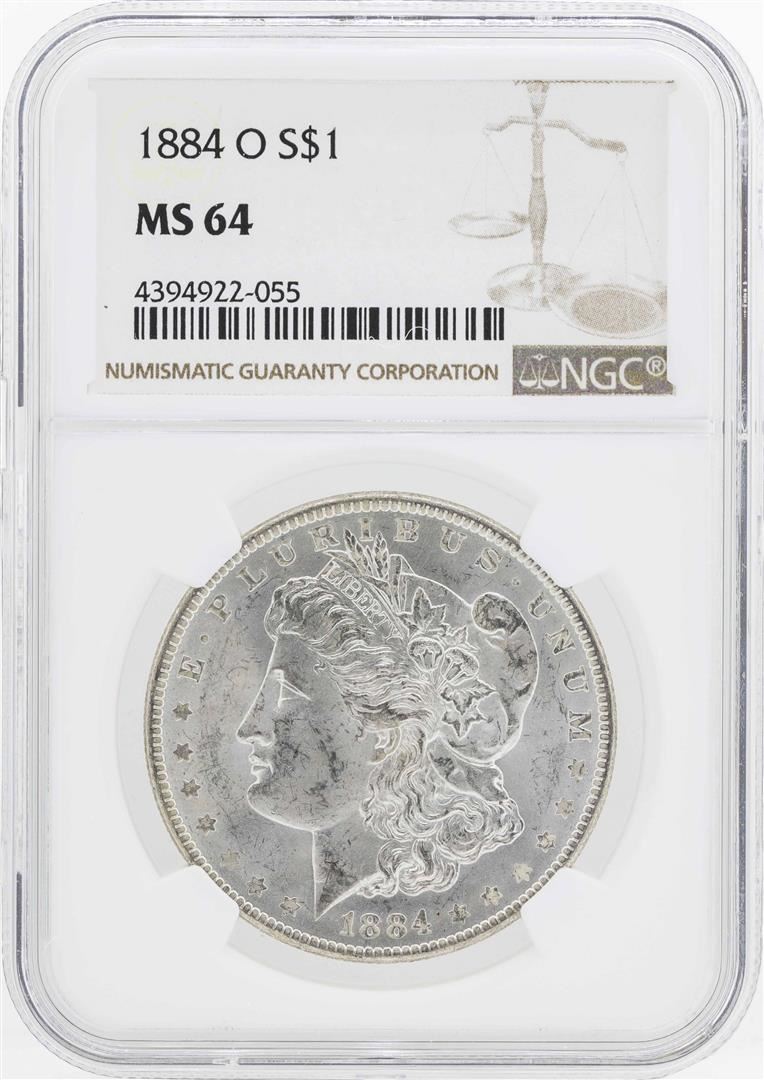 One 1884-O $1 Morgan Silver Dollar Coin NGC MS64. NGC Certified.