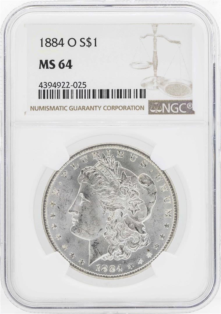 One 1884-O $1 Morgan Silver Dollar Coin NGC MS64. NGC Certified.