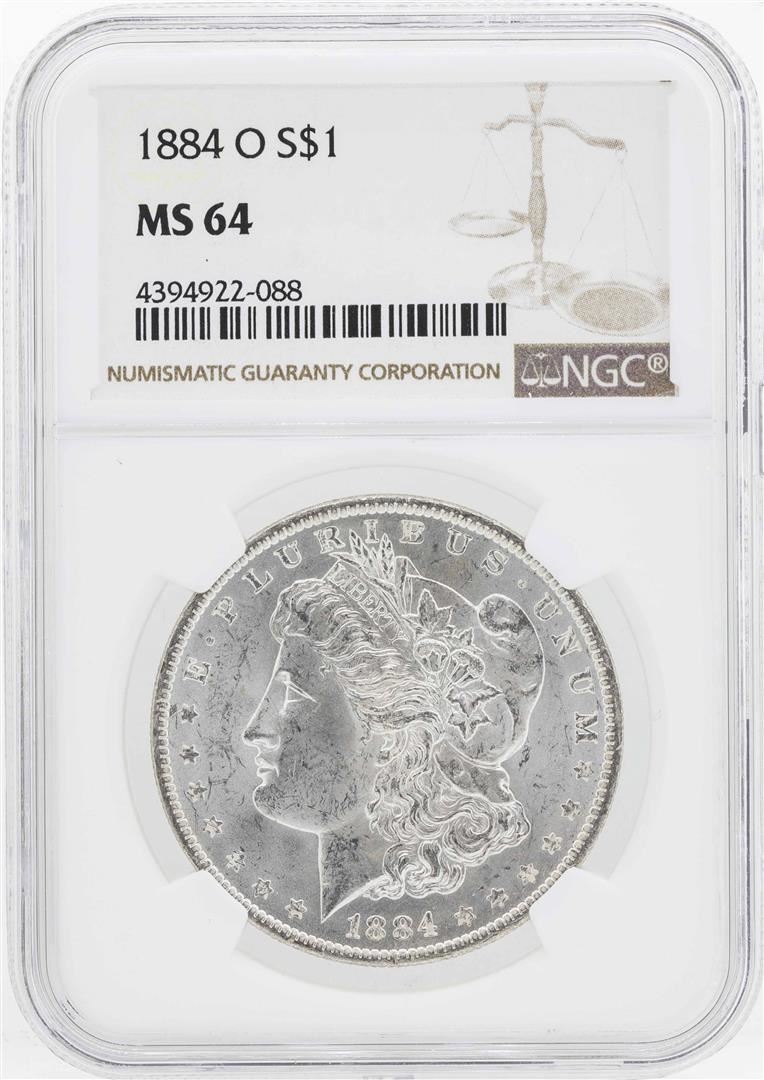 One 1884-O $1 Morgan Silver Dollar Coin NGC MS64. NGC Certified.
