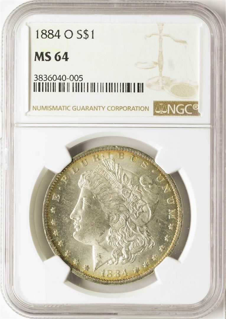 One 1884-O $1 Morgan Silver Dollar Coin NGC MS64. NGC Certified.