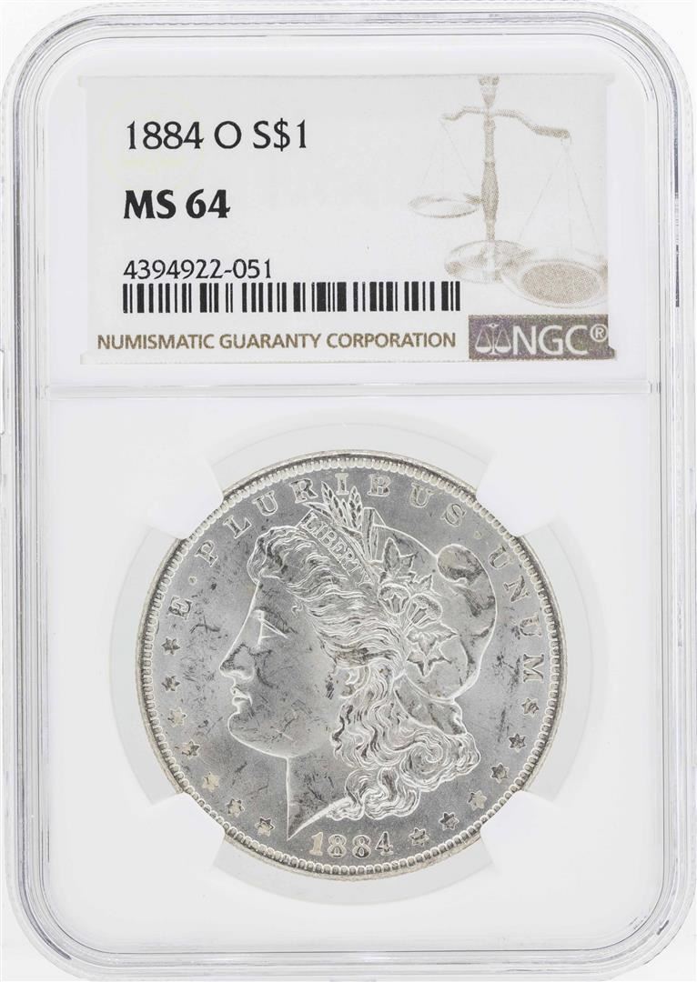 One 1884-O $1 Morgan Silver Dollar Coin NGC MS64. NGC Certified.