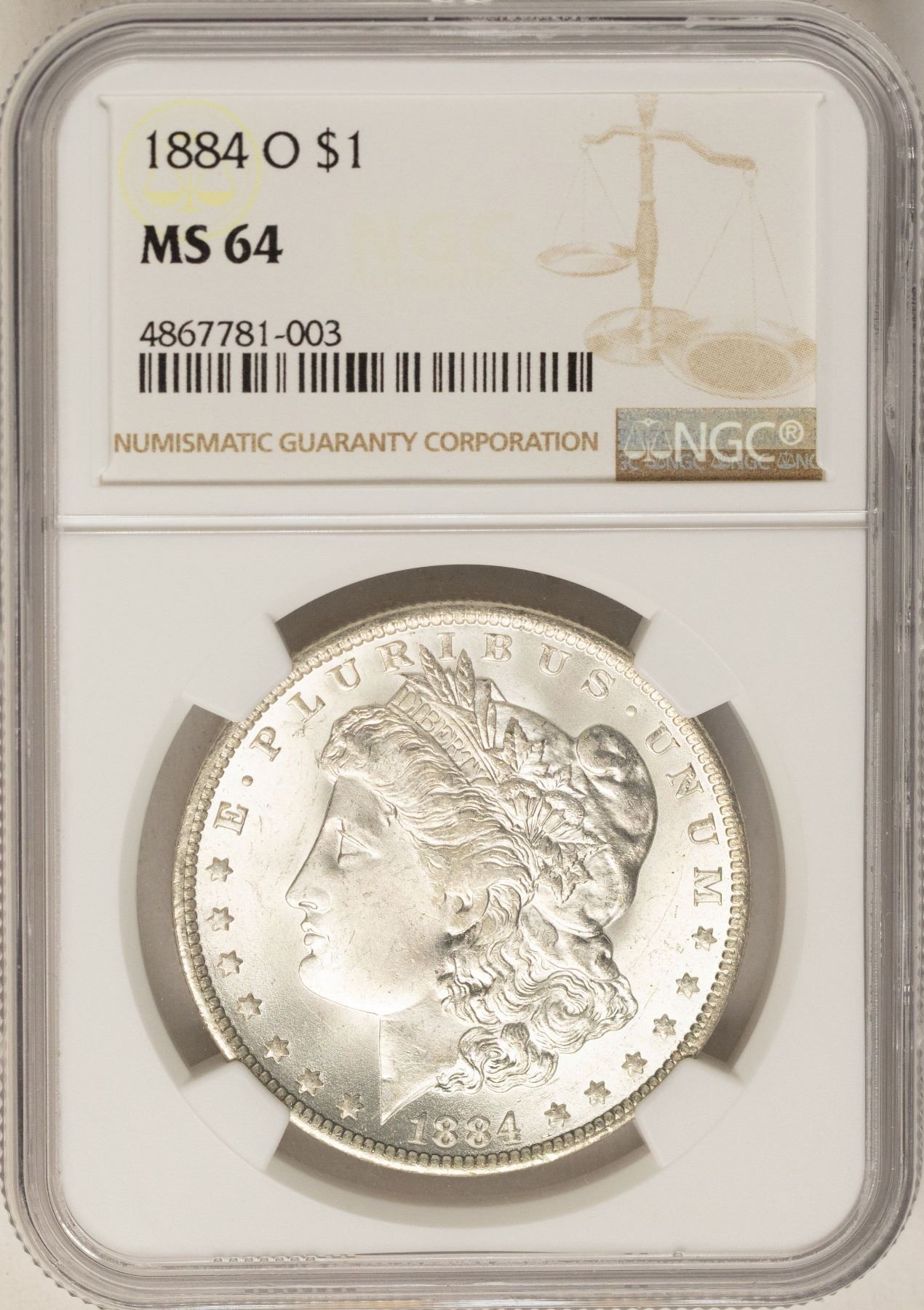 One 1884-O $1 Morgan Silver Dollar Coin NGC MS64.