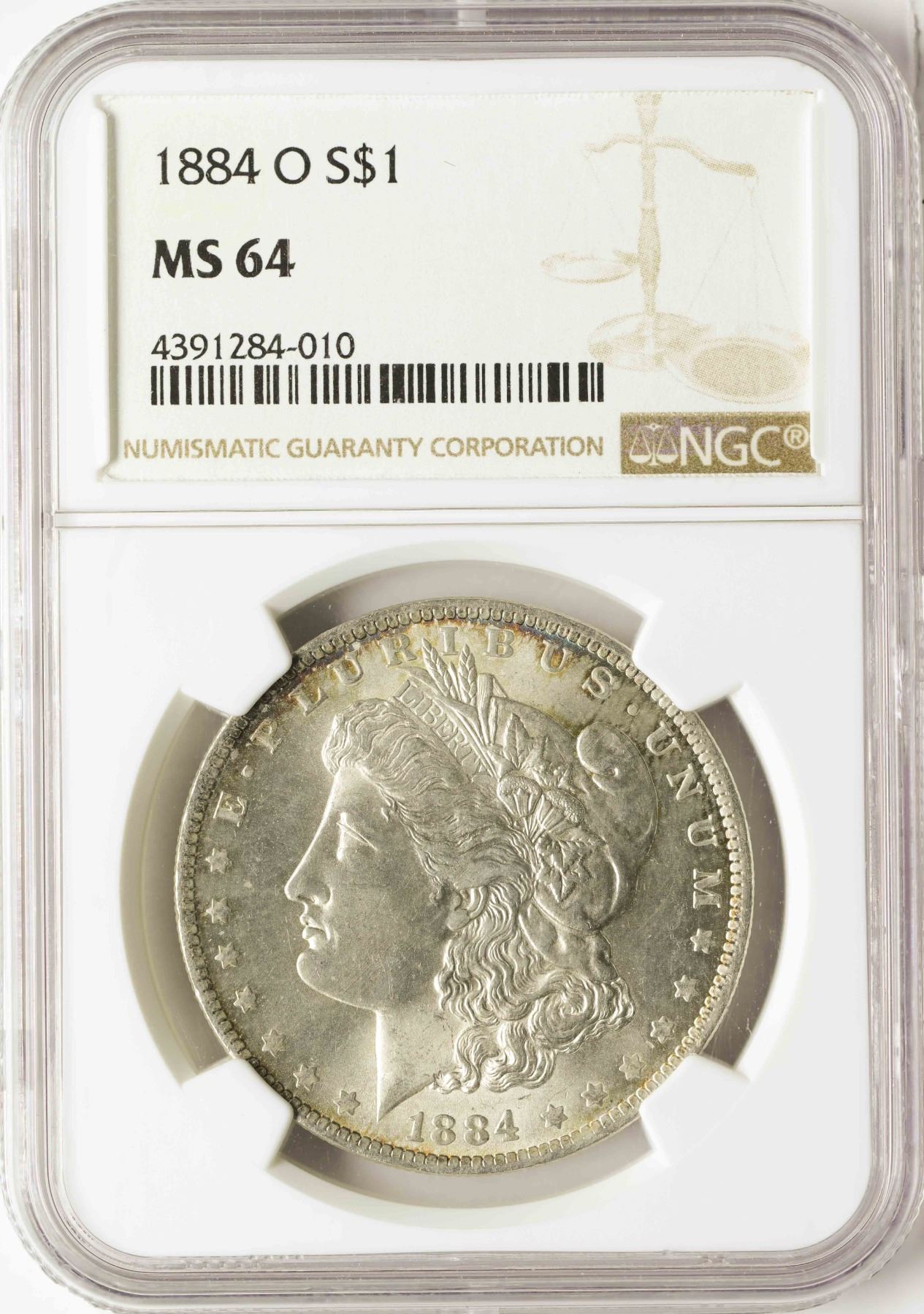 One 1884-O $1 Morgan Silver Dollar Coin NGC MS64.