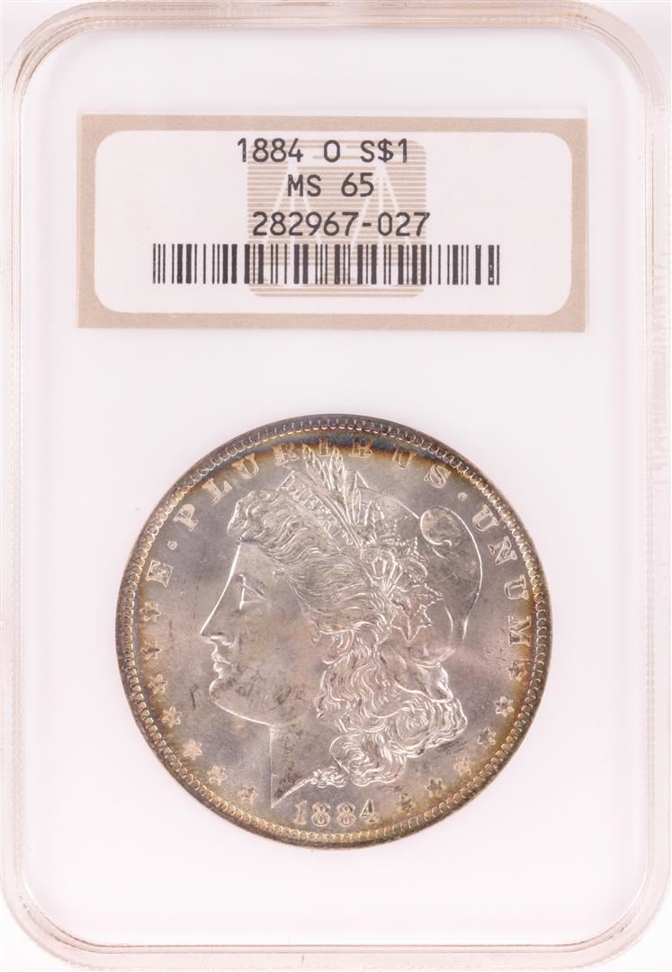 One 1884-O $1 Morgan Silver Dollar Coin NGC MS65 Nice Toning Old Holder. NGC Certified.
