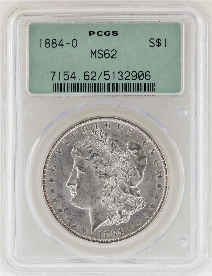 One 1884-O $1 Morgan Silver Dollar Coin PCGS MS62. PCGS Graded.