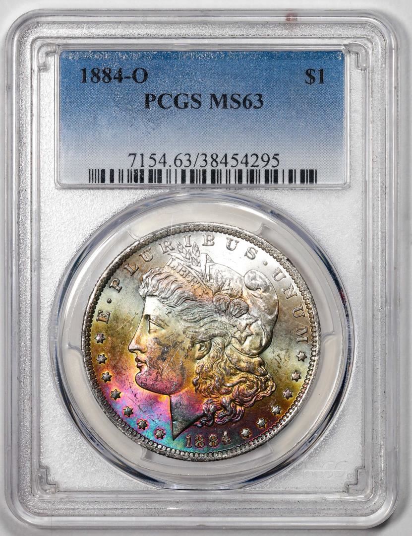 One 1884-O $1 Morgan Silver Dollar Coin PCGS MS63 Amazing Toning. PCGS Graded.
