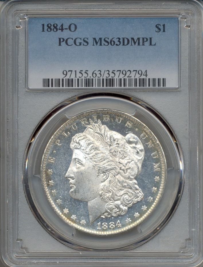 One 1884-O $1 Morgan Silver Dollar Coin PCGS MS63DMPL.