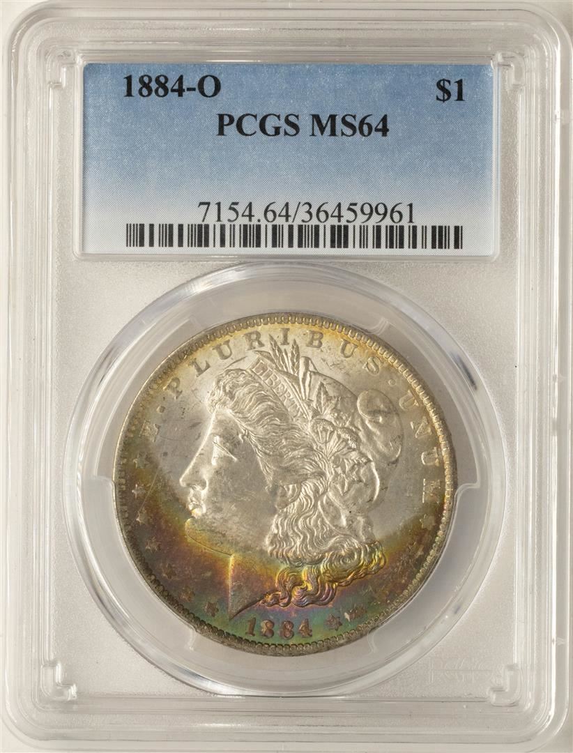 One 1884-O $1 Morgan Silver Dollar Coin PCGS MS64 Amazing Rainbow Toning. PCGS Graded.