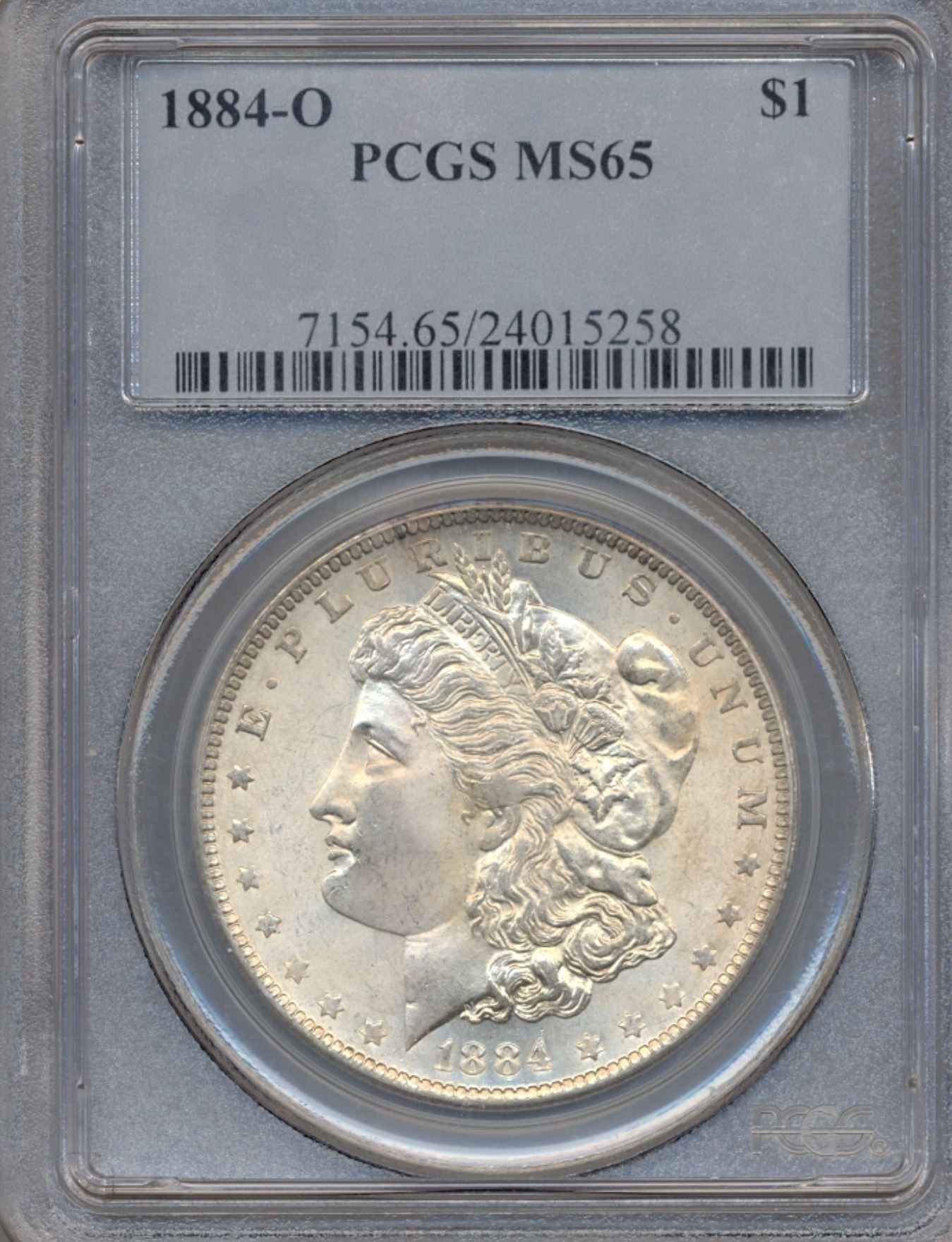 One 1884-O $1 Morgan Silver Dollar Coin PCGS MS65.