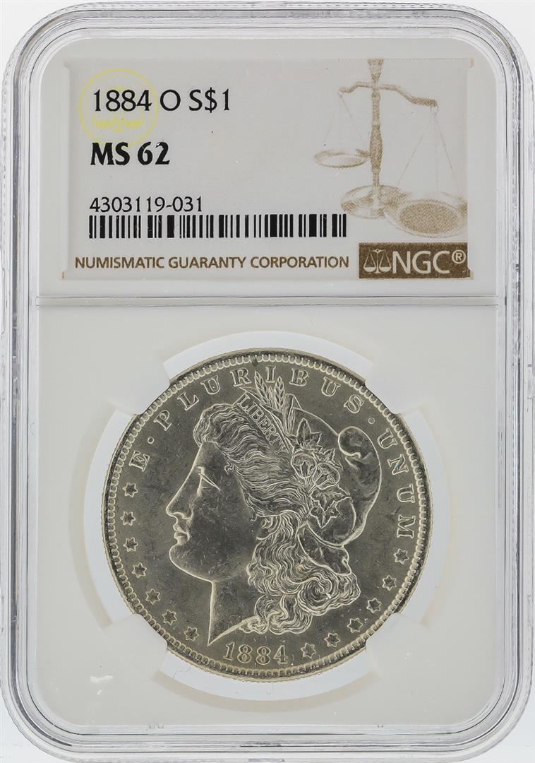 One 1884-O $1 Morgan Silver Dollar NGC Graded MS62. NGC Certified.