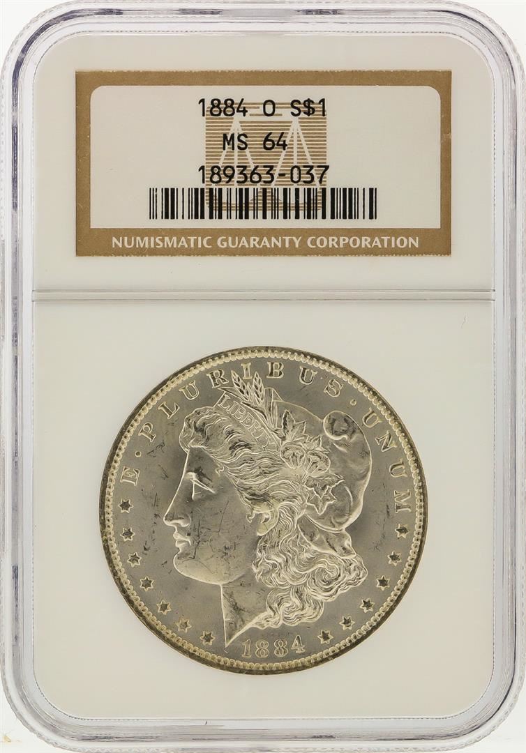 One 1884-O $1 Morgan Silver Dollar NGC Graded MS64. NGC Certified.