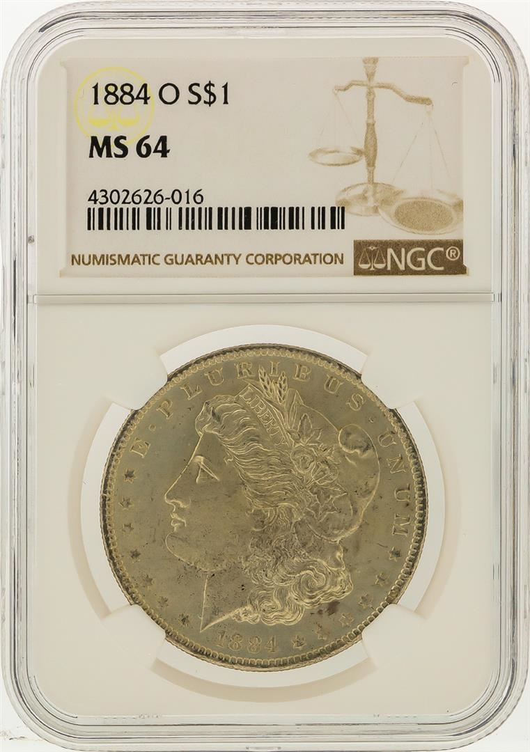 One 1884-O $1 Morgan Silver Dollar NGC Graded MS64. NGC Certified.