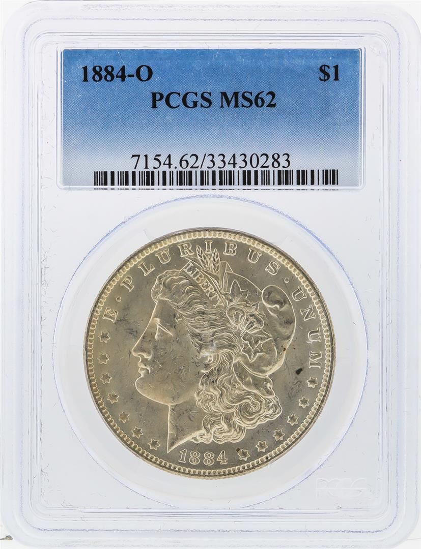 One 1884-O $1 Morgan Silver Dollar PCGS Graded MS62. PCGS Graded.