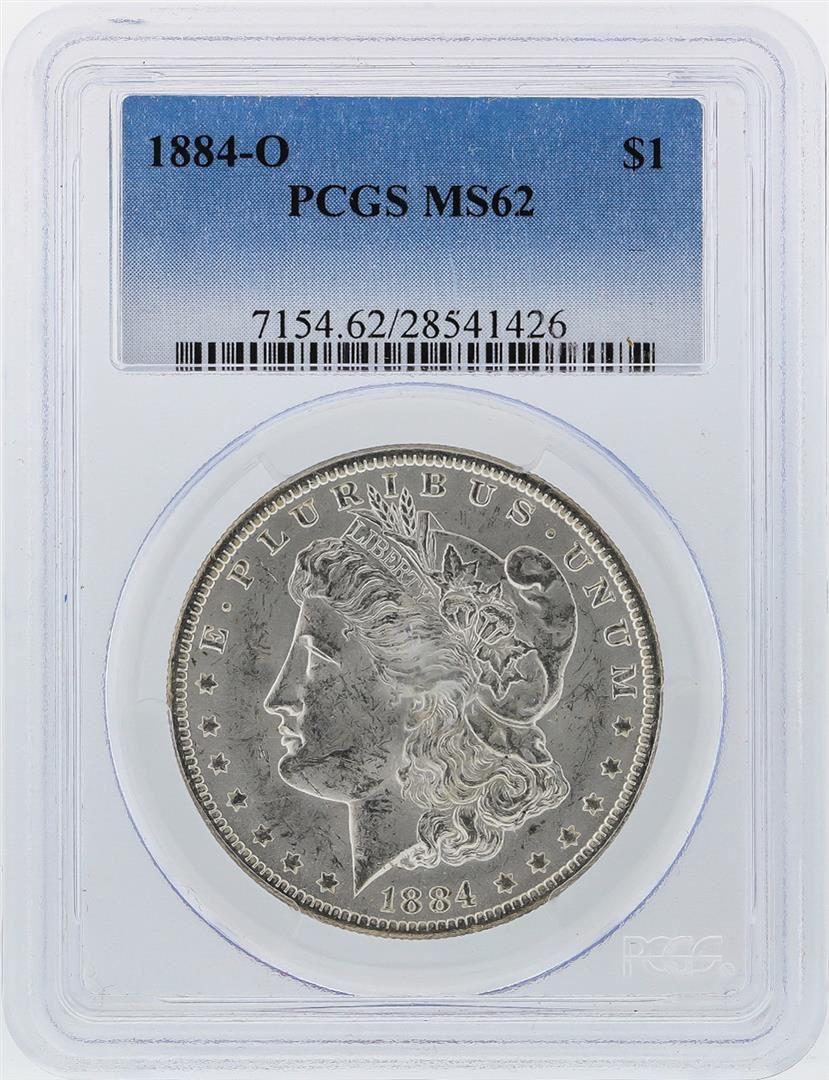 One 1884-O $1 Morgan Silver Dollar PCGS Graded MS62. PCGS Graded.