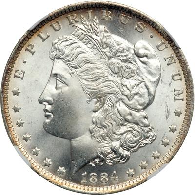 1884-O $1. NGC graded MS-67. Predominantly untoned with a minute trace of toning about the borders. Superb gem. Pop 88; 2 Finer in 67 Star.