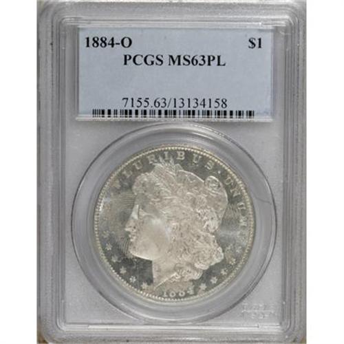 <B>1884-O $1 MS63 Prooflike PCGS.</B></I> PCGS Population (688/831). NGC Census: (425/730). Numismedia Wsl. Price for NGC/PCGS coin in MS63: $52. (#7155)<BR><BR><B>Coin Engraver:</B> George T. Morgan<BR><BR><b>Shipping:</b> Coins & Currency (<a target="_blank" href="http://www.heritageauctions.com/common/shipping.php">view shipping information</a>)