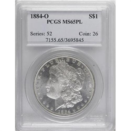 <B>1884-O $1 MS65 Prooflike PCGS.</B></I> PCGS Population (187/23). NGC Census: (131/18). Numismedia Wsl. Price for NGC/PCGS coin in MS65: $200. (#7155)<BR><I>From The Diamond Head Collection.</B></I><BR><BR><B>Coin Engraver:</B> George T. Morgan<BR><BR><b>Shipping:</b> Coins & Currency (<a target="_blank" href="http://www.heritageauctions.com/common/shipping.php">view shipping information</a>\)
