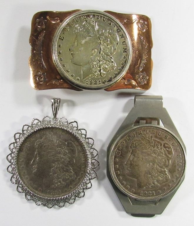 1884-O MORGAN IN BEZEL, 1921-D MORGAN MONEY