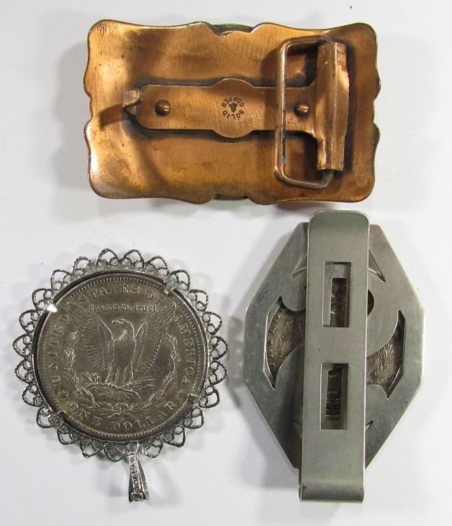 CLIP; 1921 MORGAN BELT BUCKLE MADE OF COPPER. LIVE ONLINE AUCTIONS WEEKLY!