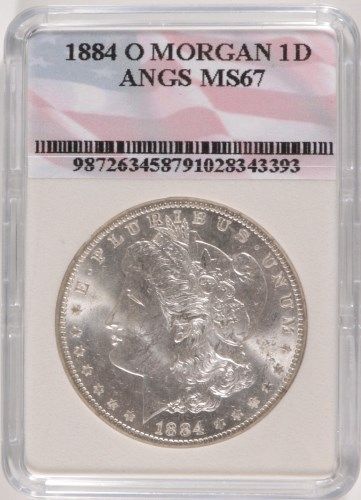 1884-O MORGAN SILVER DOLLAR, ANGS MS-67 REALLY MS-64+