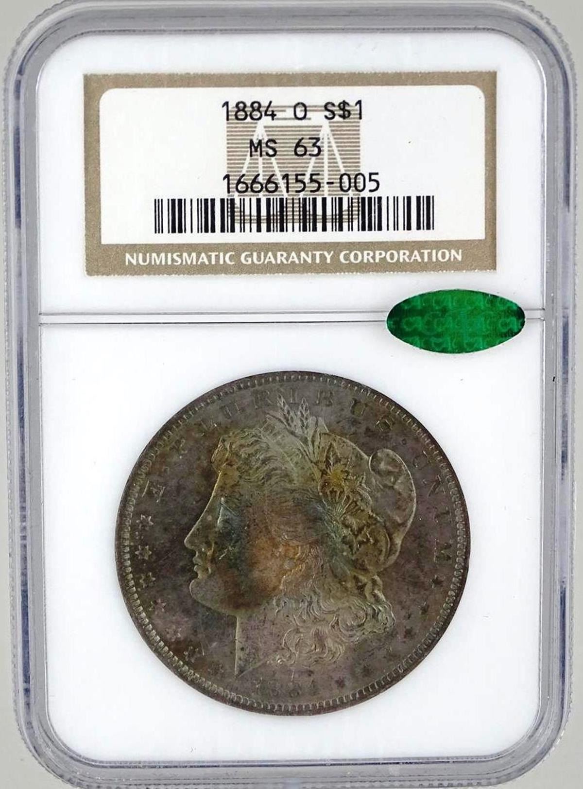 OBV. RAINBOW TONED. MS63 BY NGC, CAC
