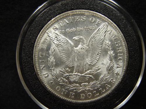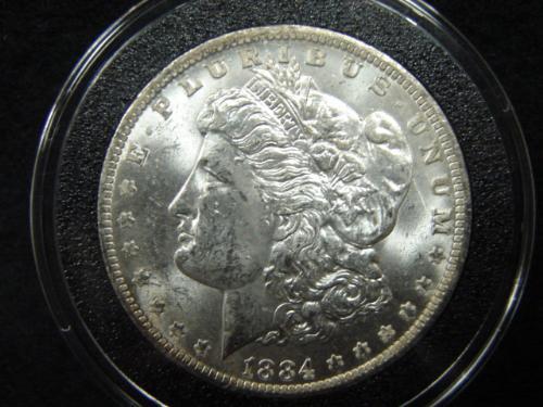1884-O U.S. MORGAN SILVER DOLLAR. Coin is in circular case.