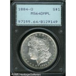 <B>1884-O<img border='0' src='http://www.heritagecoins.com/images/star.gif' width=10 height=10>$1 MS64 Deep Mirror Prooflike PCGS.</B></I> First generation PCGS holder. Fully brilliant with considerable cameo contrast and a trace of champagne toning on the reverse. Lot:10168