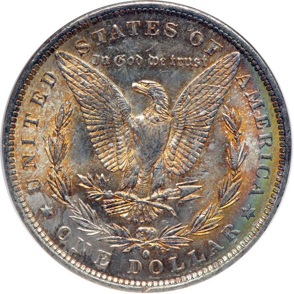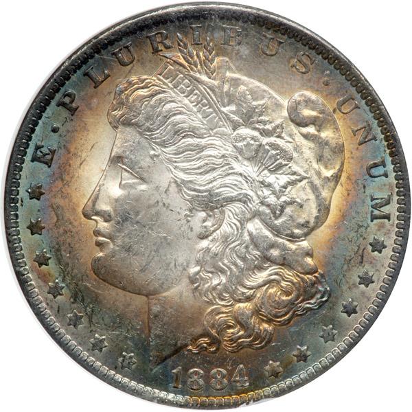 1884-O Morgan Dollar. NGC graded MS-61. Nice blue and gold toning (PCGS # 7154) .
