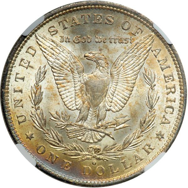 1884-O Morgan Dollar. NGC graded MS-62*. Lovely vivid rainbow toning arcing across the obverse. See our web-site to view this lovely coin (PCGS # 7154) .