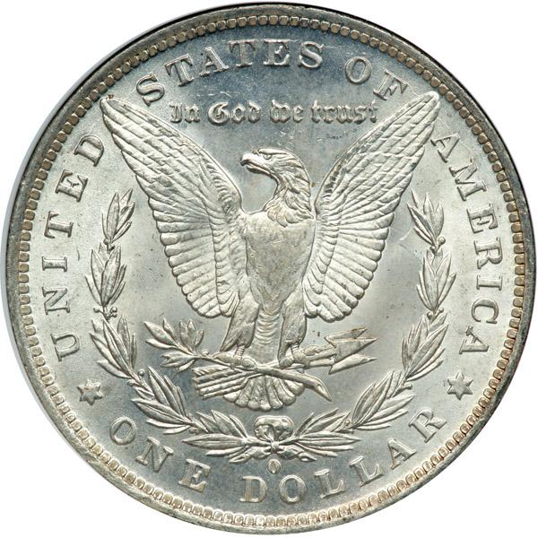 1884-O Morgan Dollar. NGC graded MS-66. The obverse exhibits lovely deep evening multi-color toning and the reverse is totally white (PCGS # 7154) .