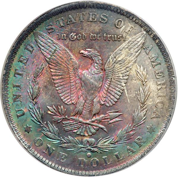 1884-O Morgan Dollar. PCGS graded MS-63. The reverse, which is featured in this holder, is loaded with intense toning (PCGS # 7154) .